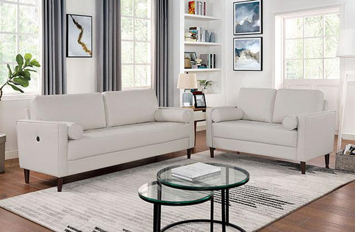 Outfit your living space in mid-century modern style with this handsome sofa set featuring box cushion back and seat cushions, tapered, angled legs...