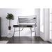 Mccredmond Silver Desk, 47 1/4"L X 28"W X 50"H, 81.84lbs. Do away with the concept of a desk and give yourself a rugged work space. This wrought metal desk adds an industrial element to a room. The light corrugation on the back panel, and bucket style drawer pull give a nice touch of detail, but ultimately this desk gets the work done and offers the amenities to you need in your workspace. Features: Metal Construction 1 Drawer and 2 Shelves Tapered Metal Legs