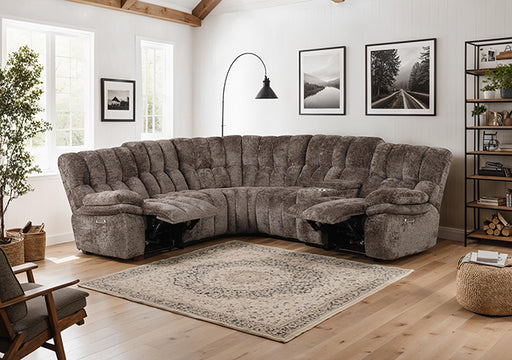 Transitional Dark Brown Fabric, Metal, Foam Glider Recliner Webbing Back Frame Construction Rounded Wide Track Pillow Top Arms Console w/ Power Ou...