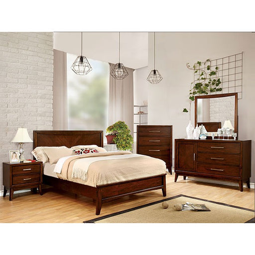 Clean lines and transitional styling of this bedroom suite are accented with contemporary silver toned hardware. The bed, dresser, night stand and ...