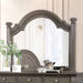 PAMPHILOS Mirror, 49 1/4"W X 43 1/4"H X 4"D, 58.3lbs. Turn any bedroom into a luxurious get-away with this beautiful ensemble. A unique arched layout is the centerpiece for the mirror, while traditional elements such as the bell shape and the bold reeded posts combine to create a sense of regality. In the same light, the trim molding and unique etched trim that adorn the top arch inspire timelessness.