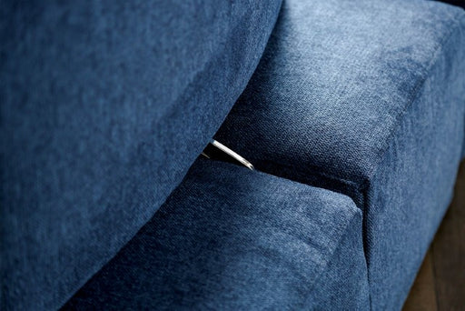 Sisseton Navy Sofa, 91"L X 37"W X 36"H, 146lbs. Low arms that sweep up to the back and a dainty nailhead trim dotting around the feet give this sof...