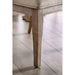Patience Rustic Natural Tone Side Chair (2/CTN), 20"W X 25 3/4"D X 40"H, 48.4lbs. Rustic glam is a delicate balance between opposites. The button tufted backing and tight nailhead trim work in conjunction with the beautiful wood grain to give off this stunning visual. Features: Trestle Style Base Padded Fabric Chairs Button Tufted, Nailhead Trim Saber Style Chair Legs