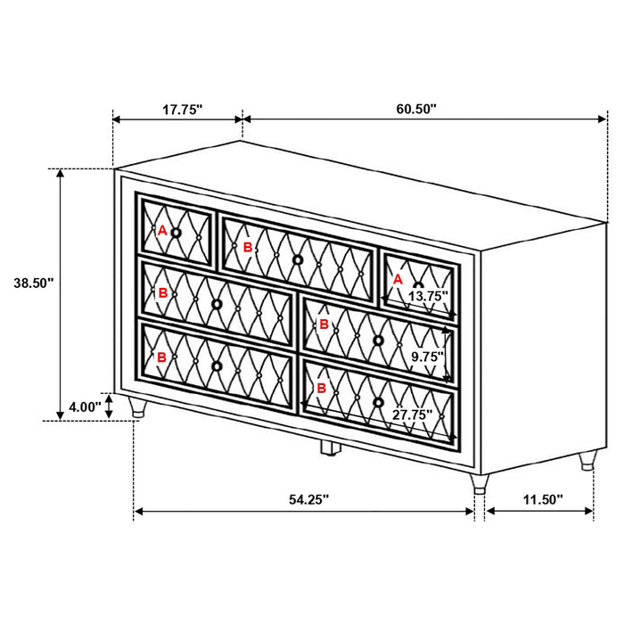 A traditional and modern bedroom set meets all expectations for an incredible impact in your sleeping space. Smooth and soft upholstered enhances each piece in this set. Coming in a camel and ivory color, this set is inspired by French Provincial decor. Crystal-like accents make their presence known within the button tufting. Gorgeous nailhead trim adds the finishing touch on this upholstered bedroom set.